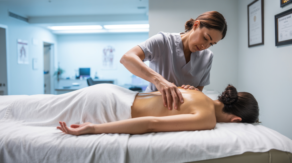 Massage Therapist’s use basic Swedish massage movements with some variations such as deep tissue massage and trigger point therapy to relax the muscles and increase circulation through the body.